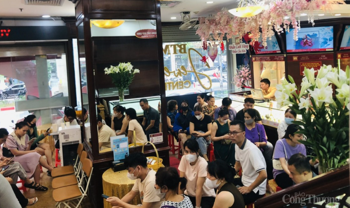 Vừa nói, chị Hòa vừa chỉ tay xuống tầng 1 kể: “Tôi thấy bảo có ông đến đây từ 6 giờ sáng chờ xếp hàng mua vàng. Đi giờ đấy chắc gì đã kịp ăn, không khéo đến lúc mua được vàng thì cũng đói vàng mắt…”.