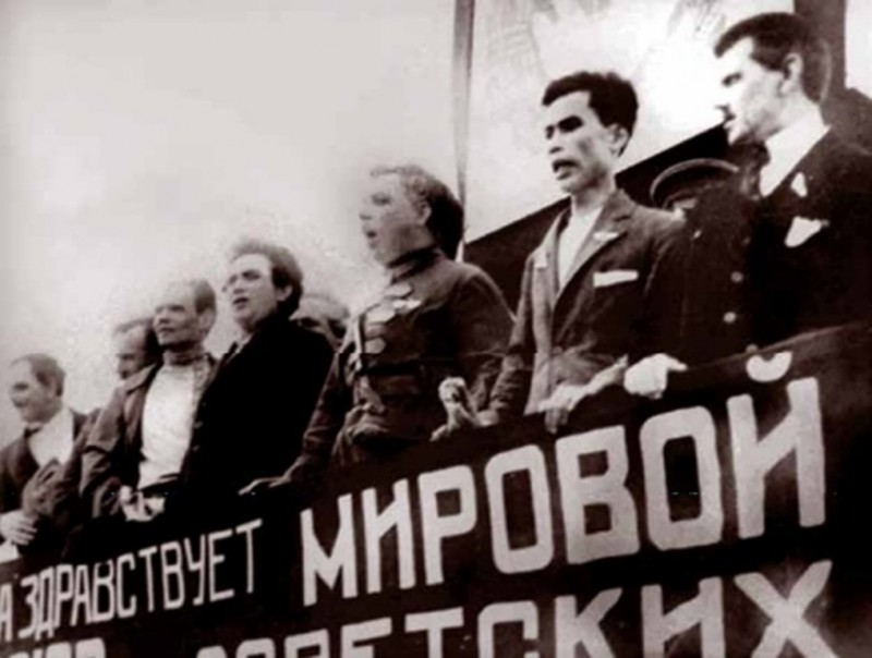 | Đồng chí Nguyễn Ái Quốc (thứ 2 từ phải) tham gia mít tinh đoàn kết quốc tế tại Liên Xô năm 1923 |