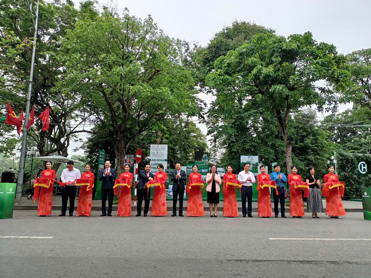 | Cắt băng khai mạc Triển lãm ảnh Vinachem hành trình xanh hóa ngành hóa chất và Gian hàng Bộ sản phẩm hàng tiêu dùng Vinachem. |