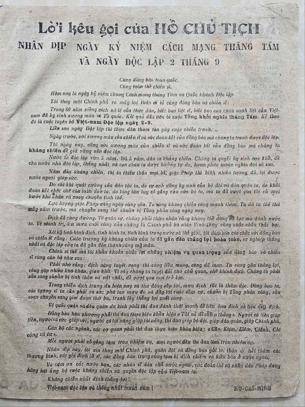 | Lời kêu gọi của Hồ Chủ tịch trên báo Sự Thật ngày 19/8/1949 |