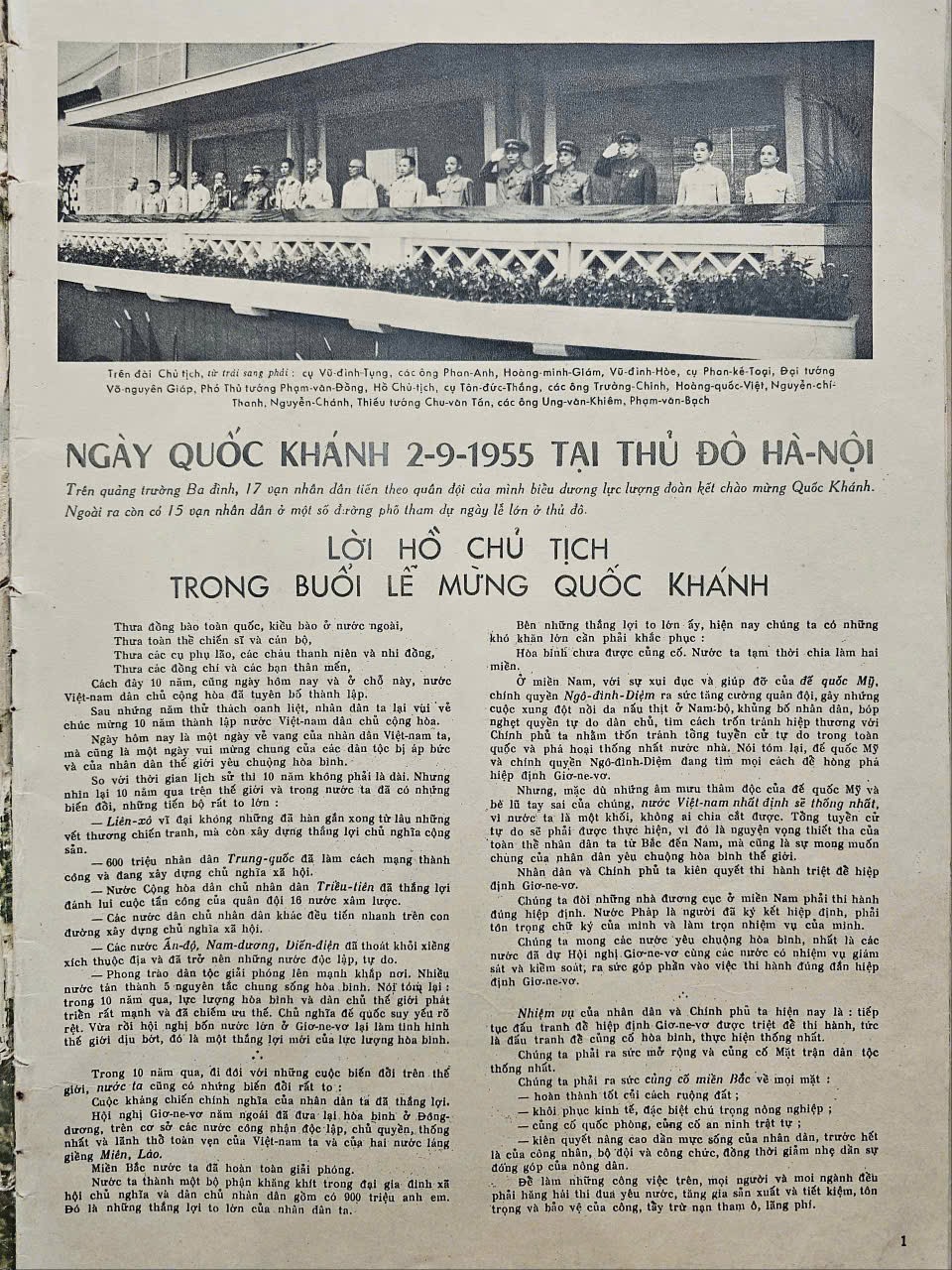 | Báo Hình ảnh Việt Nam tháng 12/1955 tường thuật không khí kỷ niệm 10 năm ngày Quốc khánh 2/9 (Ảnh trong bài do nhà sưu tầm báo chí Nguyễn Phi Dũng cung cấp) |