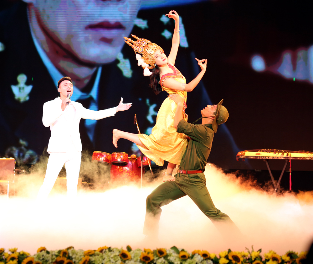 | Một tiết mục văn nghệ tại lễ kỷ niệm tái hiện sự ủng hộ, giúp đỡ giữa nhân dân Việt Nam và nhân dân Campuchia |