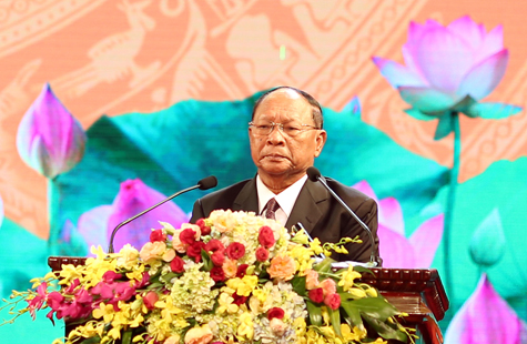 Ủy viên Bộ Chính trị, Chủ tịch Quốc hội Nguyễn Thị Kim Ngân; Ủy viên Bộ Chính trị, Phó Thủ tướng Chính phủ, Bộ trưởng Ngoại giao Phạm Bình Minh-Trưởng Ban Chỉ đạo Quốc gia Năm Hữu nghị Việt Nam-Campuchia năm 2017; Ủy viên Bộ Chính trị, Bí thư Thành ủy Hà Nội Hoàng Trung Hải; Chủ tịch Ủy ban Trung ương MTTQ Việt Nam Trần Thanh Mẫn và các đồng chí nguyên lãnh đạo Đảng, Nhà nước tham buổi lễ.