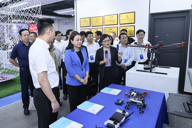 | Đoàn đại biểu cấp cao Ủy ban Trung ương MTTQ Việt Nam thăm, khảo sát tại Khu khởi nghiệp sáng tạo nền kinh tế tầm thấp quận Thanh Tú (Trung Quốc). Ảnh: Quang Vinh |