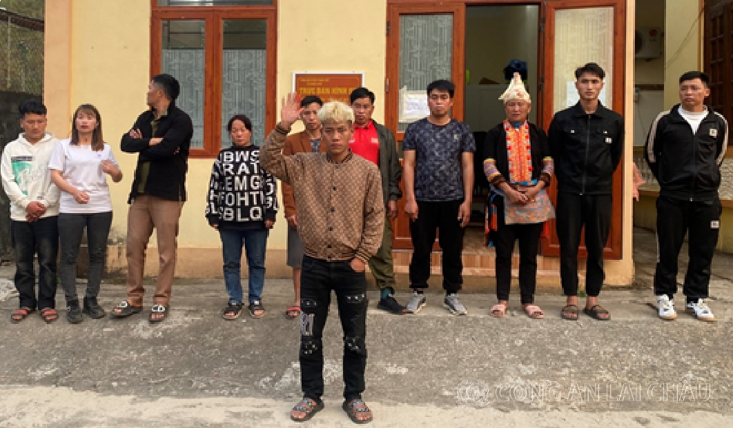 Thông tin từ Công an tỉnh Lai Châu, ngày 13/3, Công an huyện Phong Thổ bắt quả tang 5 đối tượng về hành vi đánh bạc; tiến hành điều tra mở rộng, Công an huyện Phong Thổ bắt khẩn cấp 6 đối tượng khác có liên quan.