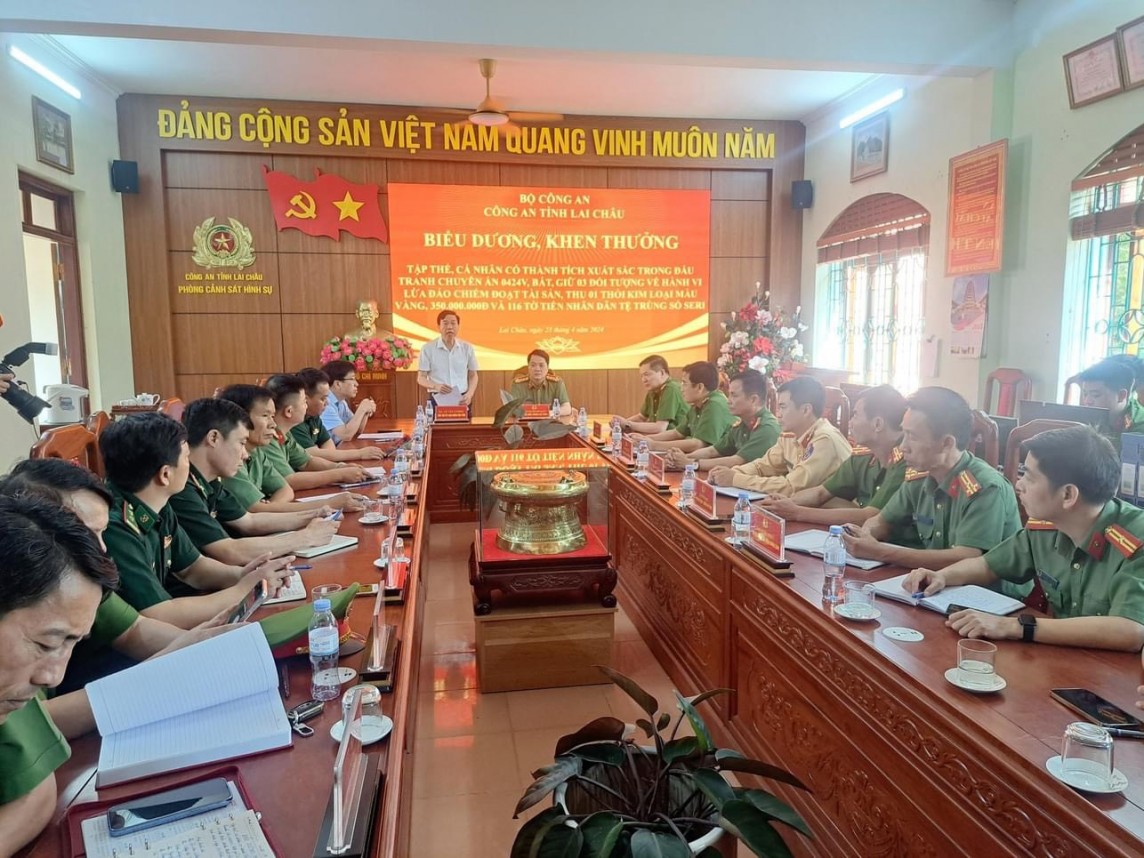 Ngày 23/4, Công an tỉnh Lai Châu tổ chức lễ biểu dương, khen thưởng các tập thể, cá nhân có thành tích xuất sắc trong đấu tranh Chuyên án 0424V.