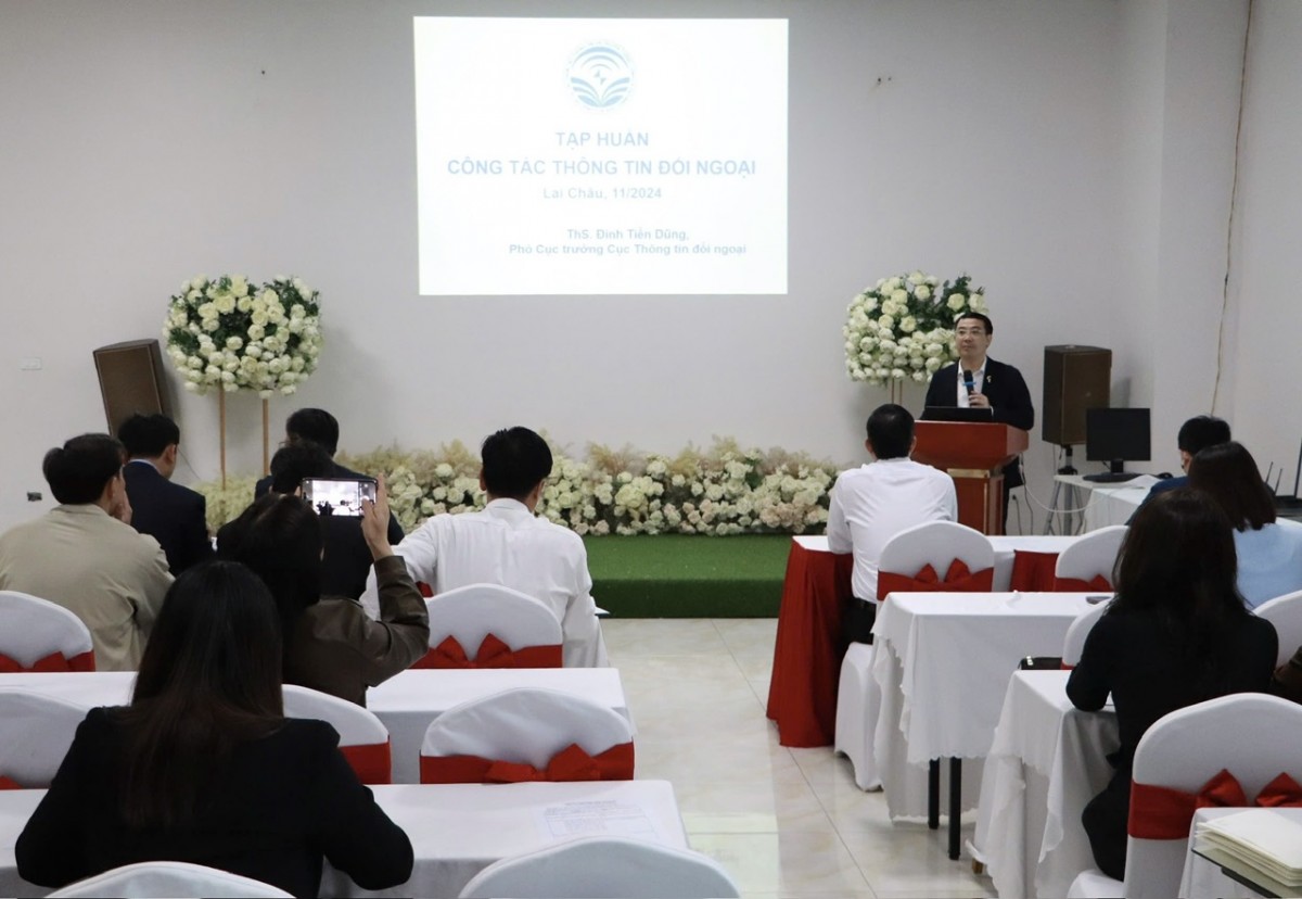 Tại Hội nghị tập huấn lớp Bồi dưỡng nghiệp vụ công tác thông tin tuyên truyền do Sở Thông tin và Truyền thông tỉnh Lai Châu tổ chức, các đại biểu đã được triển khai các chuyên đề như: Một số vấn đề cơ bản về công tác thông tin đối ngoại trong bối cảnh cách mạng 4.0 và hội nhập quốc tế; Hướng dẫn triển khai các nhóm nhiệm vụ, giải pháp chủ yếu trong Nghị quyết số 47/NQ-CP ngày 15/4/2024 của Chính phủ về Chương trình hành động của Chính phủ đến năm 2030 thực hiện Kết luận số 57-KL/TW của Bộ Chính trị gắn với đặc thù các tỉnh khu vực. Hướng dẫn nghiệp vụ và kỹ năng triển khai công tác thông tin đối ngoại cho các lực lượng tham gia hoạt động thông tin đối ngoại. Thông tin công tác thông tin đối ngoại trên địa bàn tỉnh. Một số kiến thức cơ bản về khu vực biên giới trên đất liền; bảo vệ chủ quyền lãnh thổ, an ninh biên giới quốc gia trong tình hình mới. Thông tin kết quả bảo vệ chủ quyền lãnh thổ, an ninh biên giới trên địa bàn tỉnh Lai Châu. Thông tin kết quả hoạt động thông tin đối ngoại khu vực biên giới trên địa bàn tỉnh Lai Châu. Đồng thời, giải đáp những khó khăn, vướng mắc trong triển khai công tác thông tin đối ngoại.
