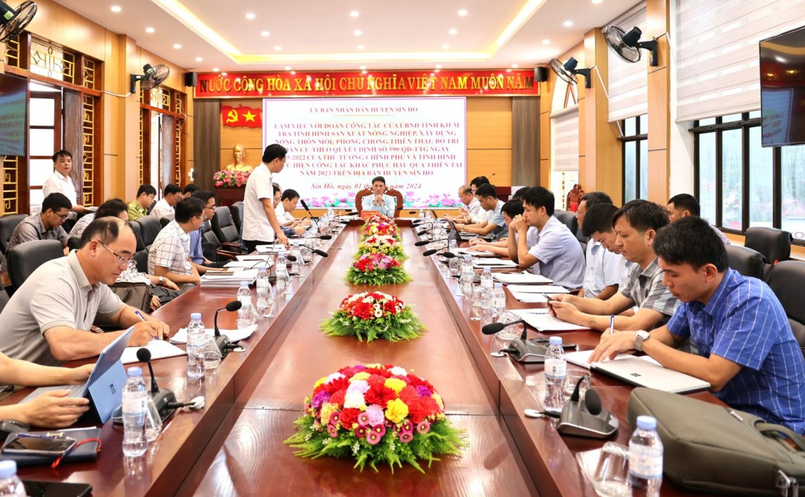 Tại buổi làm việc, lãnh đạo UBND huyện Sìn Hồ, đại diện phòng, cơ quan chuyên môn của huyện kiến nghị một số nội dung nhằm tháo gỡ vướng mắc của cơ chế, chính sách; điều chỉnh thêm một số quy định thuộc thẩm quyền; đề nghị cơ quan chuyên môn hướng dẫn cụ thể để việc thực hiện tại cơ sở được thuận lợi hơn; trồng rừng phòng hộ bằng cây chè Shan...