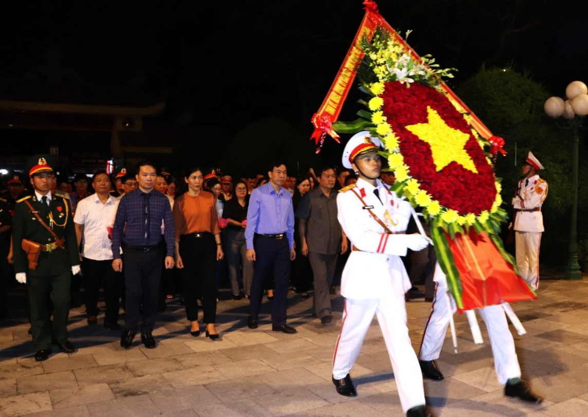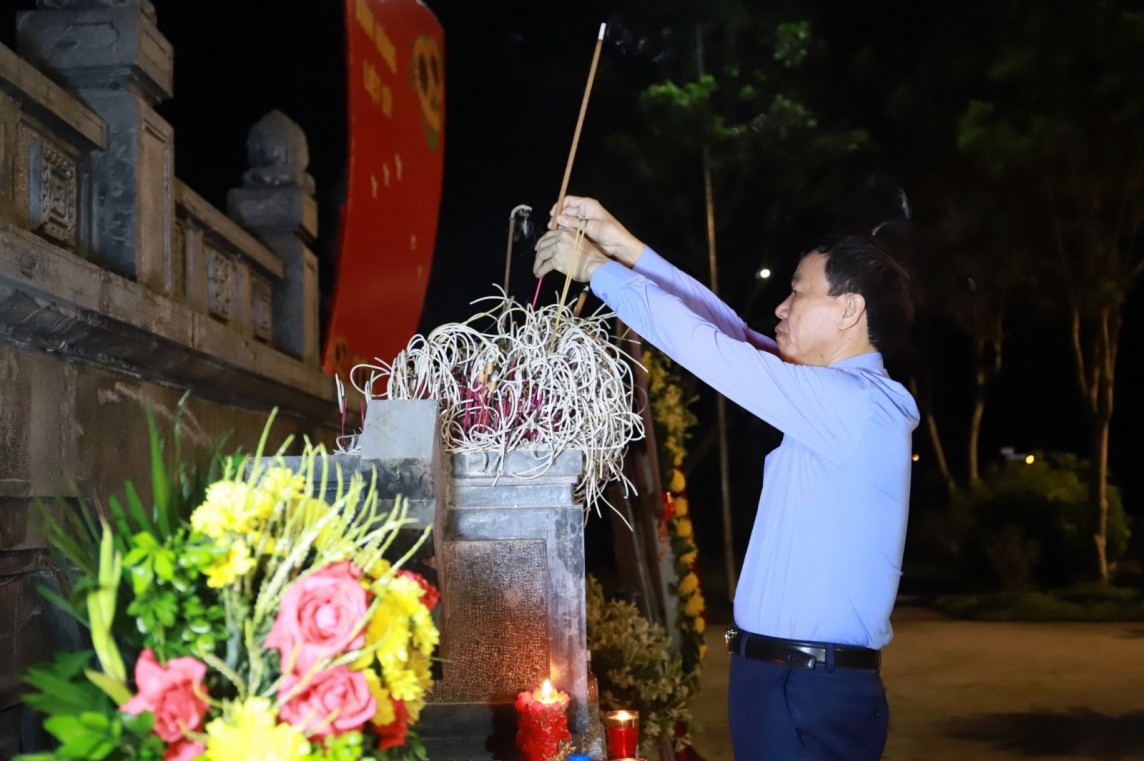 Trong giờ phút linh thiêng, các đồng chí đại biểu đã dâng vòng hoa, những nén tâm nhang, những ngọn nến hồng để bày tỏ lòng thành kính và biết ơn sâu sắc với các Anh hùng Liệt sĩ; dành phút mặc niệm tưởng nhớ đồng chí Nguyễn Phú Trọng, Tổng Bí thư Ban Chấp hành Trung ương Đảng Cộng sản Việt Nam, người học trò xuất sắc của Chủ tịch Hồ Chí Minh.