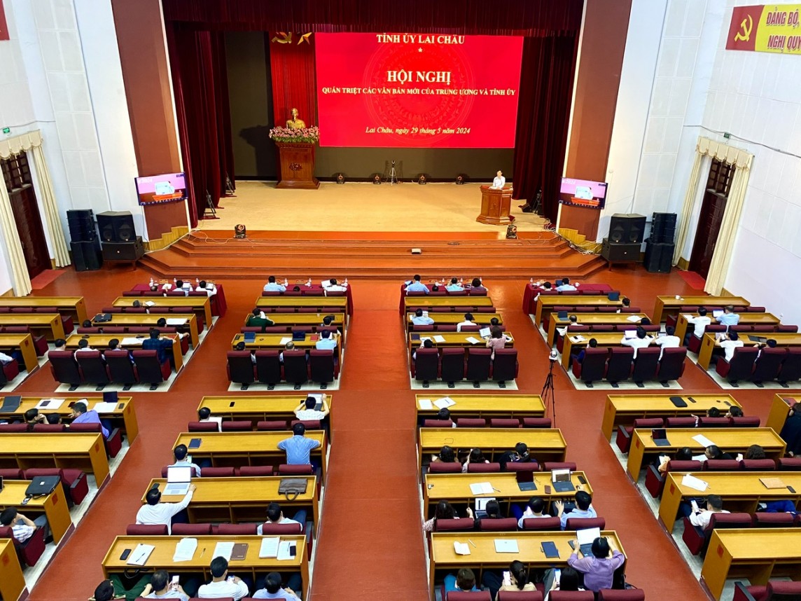 Hội nghị quán triệt các văn bản mới của Trung ương và Tỉnh ủy Lai Châu được tổ chức bằng hình thức trực tiếp kết hợp với trực tuyến từ tỉnh đến cơ sở.