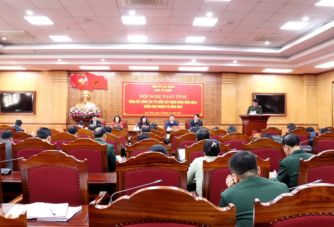 Tại Hội nghị, đại diện lãnh đạo Ban Tổ chức Tỉnh ủy Lai Châu trình bày dự thảo Báo cáo kết quả công tác tổ chức xây dựng Đảng năm 2024, nhiệm vụ trọng tâm năm 2025. Theo đó, năm 2024, toàn ngành Tổ chức xây dựng Đảng tỉnh Lai Châu đã bám sát chương trình công tác của cấp ủy, các kết luận giao ban hàng quý, giao ban khu vực của Ban Tổ chức Trung ương, chủ động, tích cực tham mưu hoàn thành tốt các nhiệm vụ được giao, nổi bật là: Kịp thời quán triệt, ban hành và triển khai Kế hoạch thực hiện Chỉ thị số 35-CT/TW của Bộ Chính trị về Đại hội Đảng bộ các cấp tiến tới Đại hội Đại biểu toàn quốc lần thứ XIV của Đảng, thành lập các Tiểu ban chuẩn bị Đại hội; chuẩn bị tổ chức Đại hội điểm, Đại hội Chi bộ, Đảng bộ bộ phận trực thuộc Đảng ủy cơ sở theo kế hoạch. Quán triệt, xác định quyết tâm chính trị cao nhất trong triển khai chủ trương của Bộ Chính trị, Ban Chỉ đạo Trung ương về tổng kết thực hiện Nghị quyết số 18-NQ/TW và sắp xếp, tinh gọn tổ chức bộ máy của hệ thống chính trị...