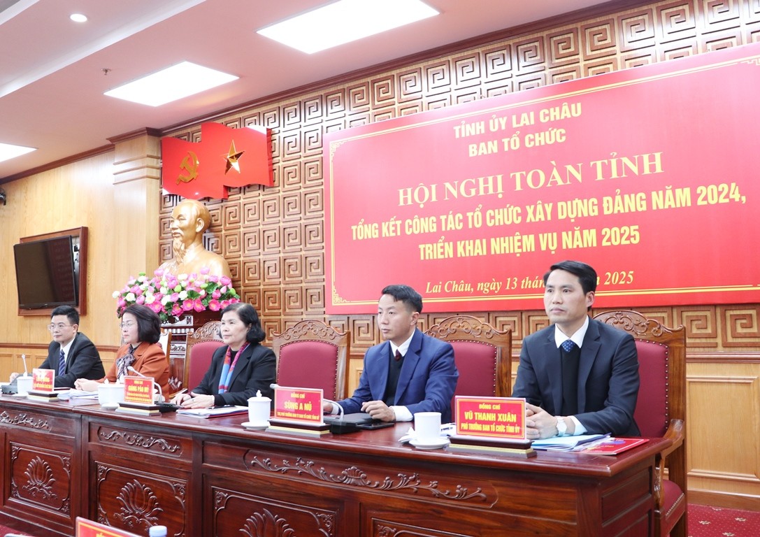 Năm 2025, ngành Tổ chức xây dựng Đảng tỉnh Lai Châu tiếp tục đổi mới, nỗ lực, quyết tâm cao triển khai thực hiện toàn diện, đồng bộ 5 nhóm nhiệm vụ triển khai tại Hội nghị toàn quốc tổng kết công tác tổ chức xây dựng Đảng và 23 nhiệm vụ trọng tâm trong Chương trình làm việc năm của Ban Thường vụ Tỉnh ủy, trọng tâm là: Tham mưu công tác chuẩn bị, tổ chức thành công Đại hội Đảng bộ các cấp nhiệm kỳ 2025 - 2030; đẩy mạnh việc sắp xếp tổ chức bộ máy, biên chế và vị trí việc làm; tham mưu thực hiện hiệu quả Kết luận số 21-KL/TW của Ban Chấp hành Trung ương khóa XIII và Kế hoạch số 73-KH/TU của Ban Thường vụ Tỉnh ủy về xây dựng, chỉnh đốn Đảng…