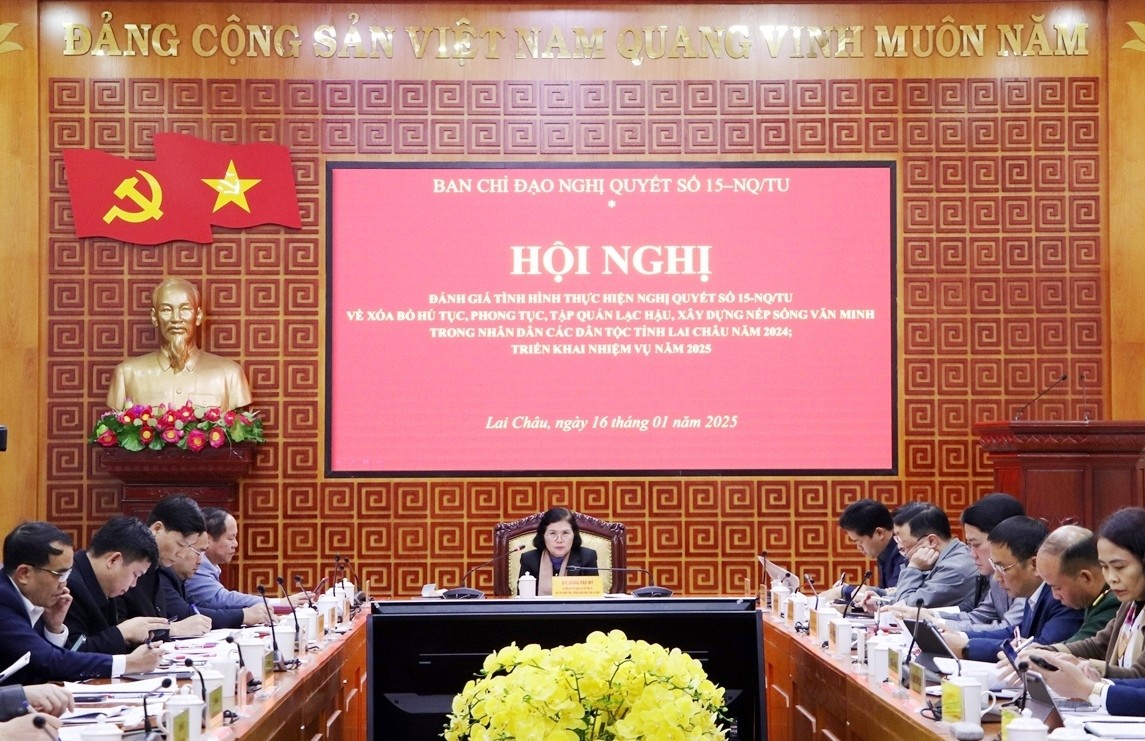 Theo thông tin từ UBND tỉnh Lai Châu, chiều ngày (16/1), Ban Chỉ đạo Nghị quyết số 15-NQ/TU tổ chức Hội nghị đánh giá tình hình thực hiện Nghị quyết số 15-NQ/TU về xóa bỏ hủ tục, phong tục, tập quán lạc hậu, xây dựng nếp sống văn minh trong Nhân dân các dân tộc tỉnh Lai Châu năm 2024; triển khai nhiệm vụ năm 2025.