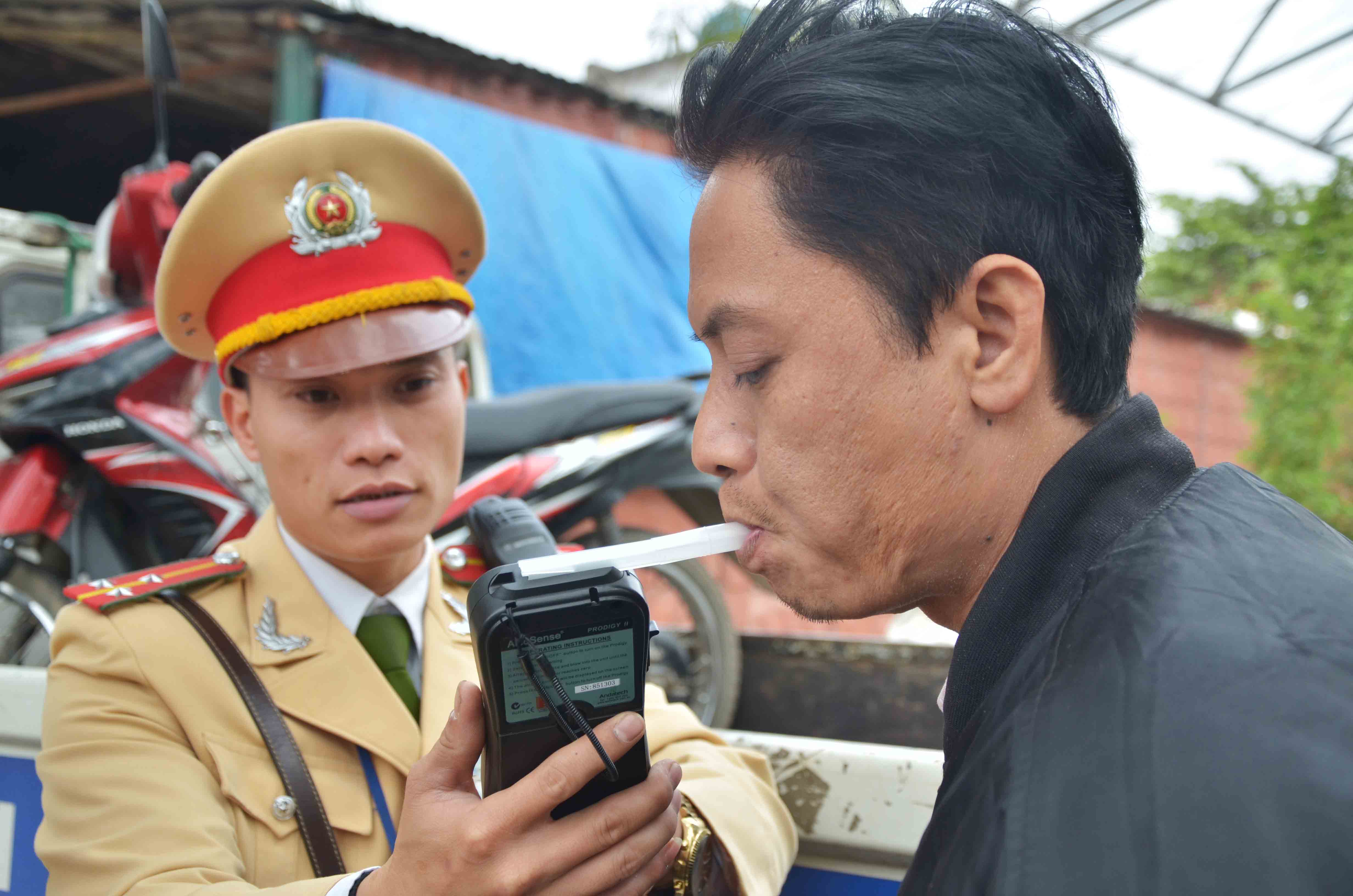 | Cảnh sát giao thông đo nồng độ cồn trong hơi thở của người điều khiển phương tiện |