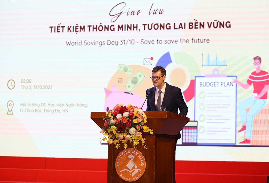 “Tiết kiệm để Cứu lấy Tương lai” là chủ đề của năm nay tại Việt Nam - một quốc gia ven biển đang chịu nhiều ảnh hưởng của biến đổi khí hậu. “Tính bền vững là vấn đề sống còn và các khoản đầu tư bền vững xanh ngày càng tăng nhanh, trong đó, ngành tài chính của Việt Nam cũng như các trường đại học sẽ đóng vai trò quan trọng và việc giáo dục tài chính cho sinh viên” - ông Christian Grajek nói.