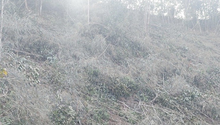 | Hiện trường vụ phá hơn 1,6 ha rừng tại tiểu khu 189, xã Rô Men, huyện Đam Rông, tỉnh Lâm Đồng |