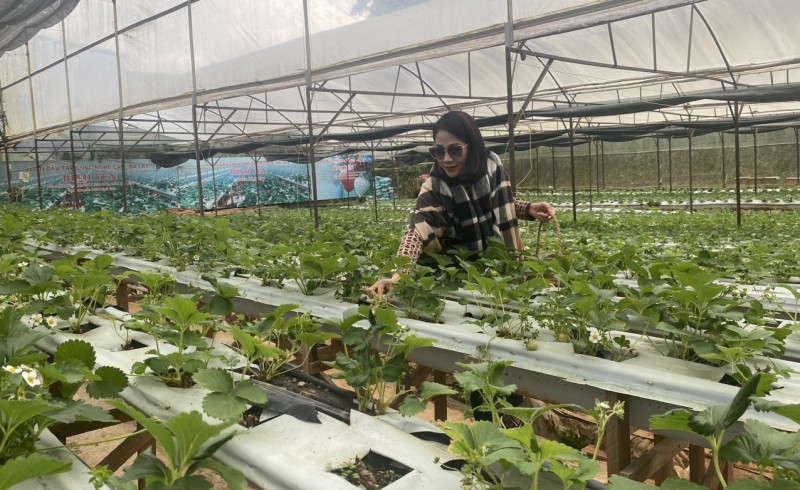 | Du khách được trực tiếp thu hoạch sản phẩm dâu tây tại vườn dâu Bình Yên, phường 6, TP. Đà Lạt, tỉnh Lâm Đồng |