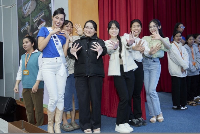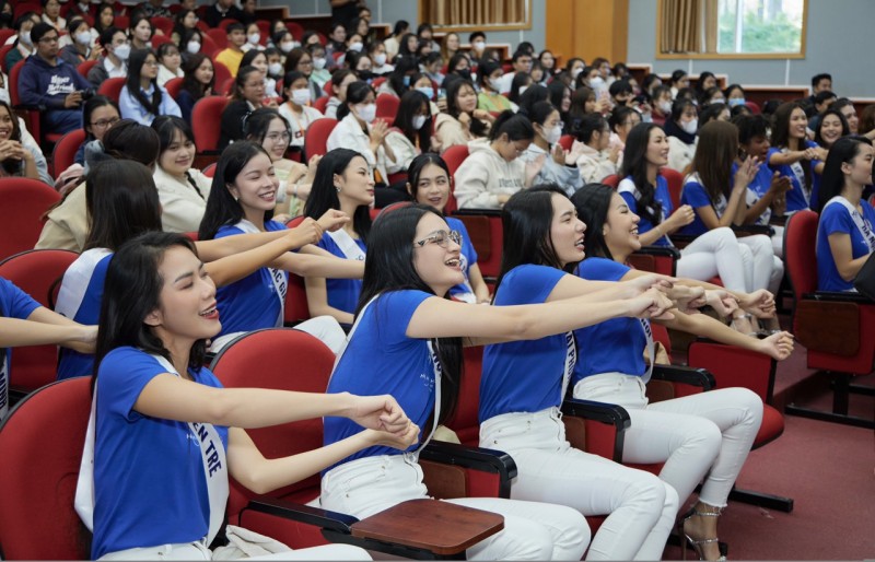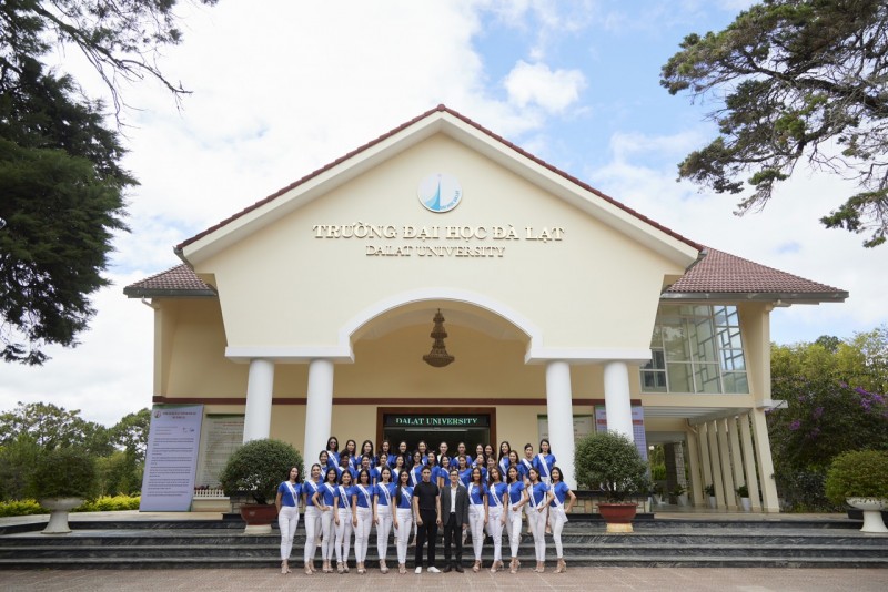 Sau khi gặp gỡ với lãnh đạo ngành văn hóa tỉnh Lâm Đồng, Top 39 Hoa hậu Hoàn vũ Việt Nam đã đến giao lưu cùng sinh viên Trường Đại học Đà Lạt.