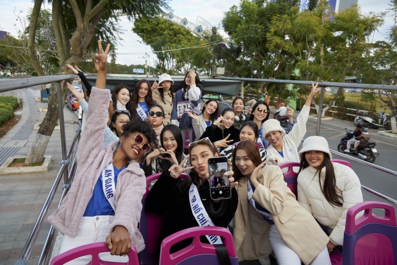 | Các thí sinh hào hứng khi cuộc thi Hoa hậu Hoàn vũ năm 2023 được tổ chức tại TP. Đà Lạt |