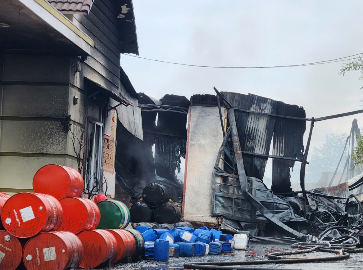 Theo ghi nhận ban đầu của cơ quan chức năng, vụ cháy không gây thiệt hại về người. Tuy nhiên, vụ cháy đã thiêu rụi nhiều tài sản bên trong kho; trong đó, có 5 xe ô tô các loại gồm 3 xe tải, 1 xe bán tải và 1 xe nâng. Ngoài ra, còn có hàng trăm phi, thùng, chai nhớt, lốp xe ô tô với số lượng lớn cũng bị ngọn lửa thiêu rụi.