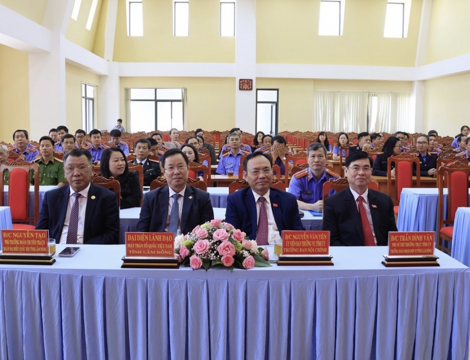 | Các đồng chí lãnh đạo tỉnh Lâm Đồng tham dự Lễ công bố và trao quyết định bổ nhiệm Viện trưởng Viện kiểm sát nhân dân tỉnh Lâm Đồng. Ảnh: CTV |