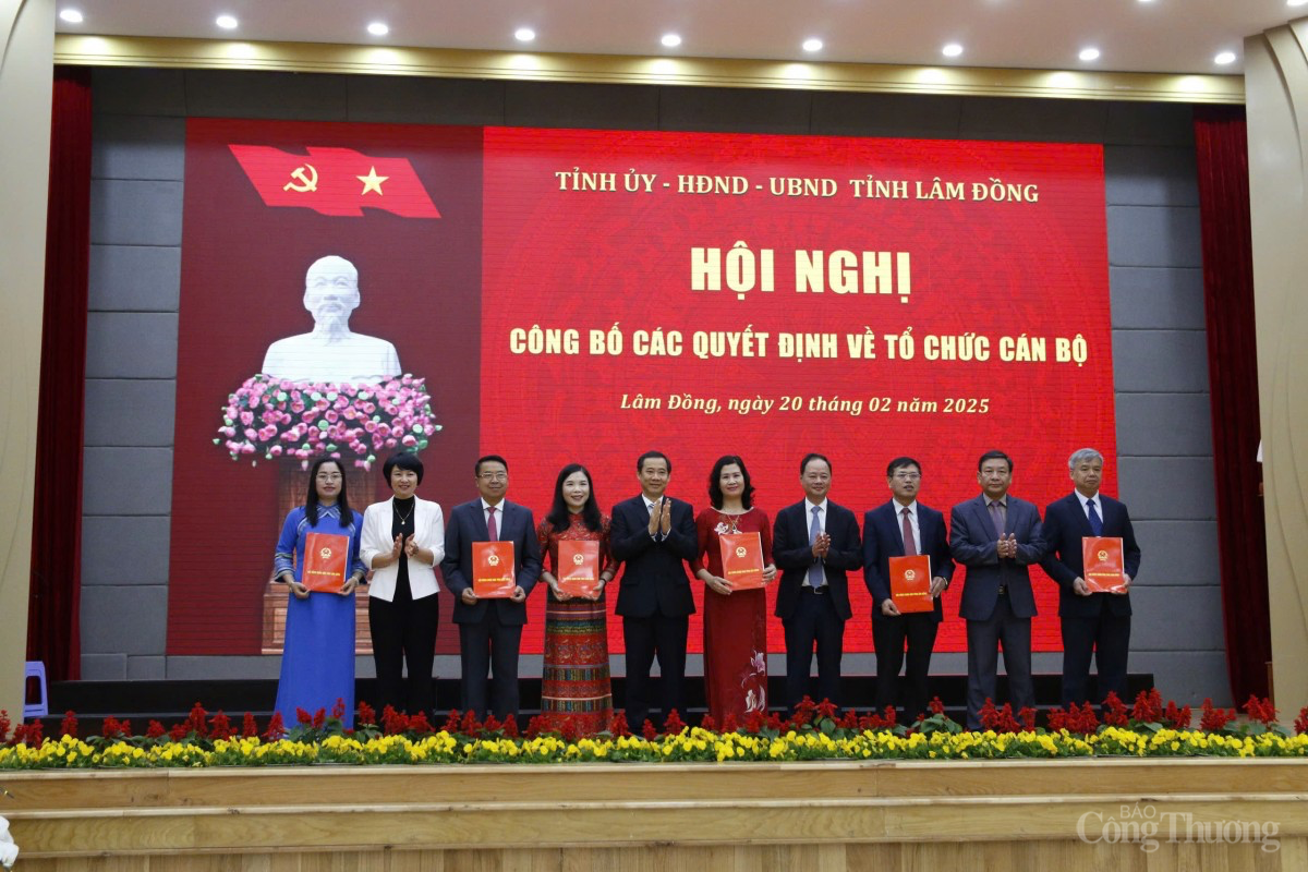 | Lãnh đạo tỉnh Lâm Đồng trao các quyết định bổ nhiệm 6 giám đốc Sở mới. Ảnh: Lê Sơn |