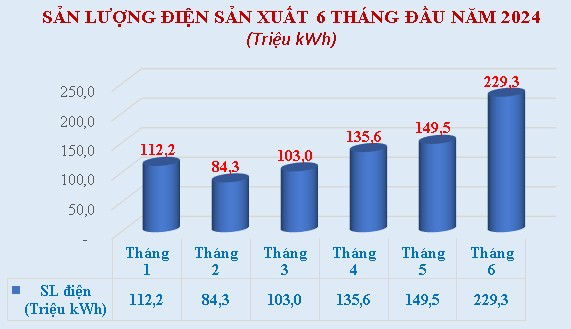 | Bảng thống kê sản lượng điện sản xuất 6 tháng đầu năm 2024. (Ảnh: CTV) |