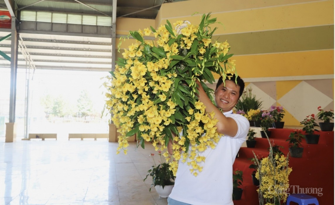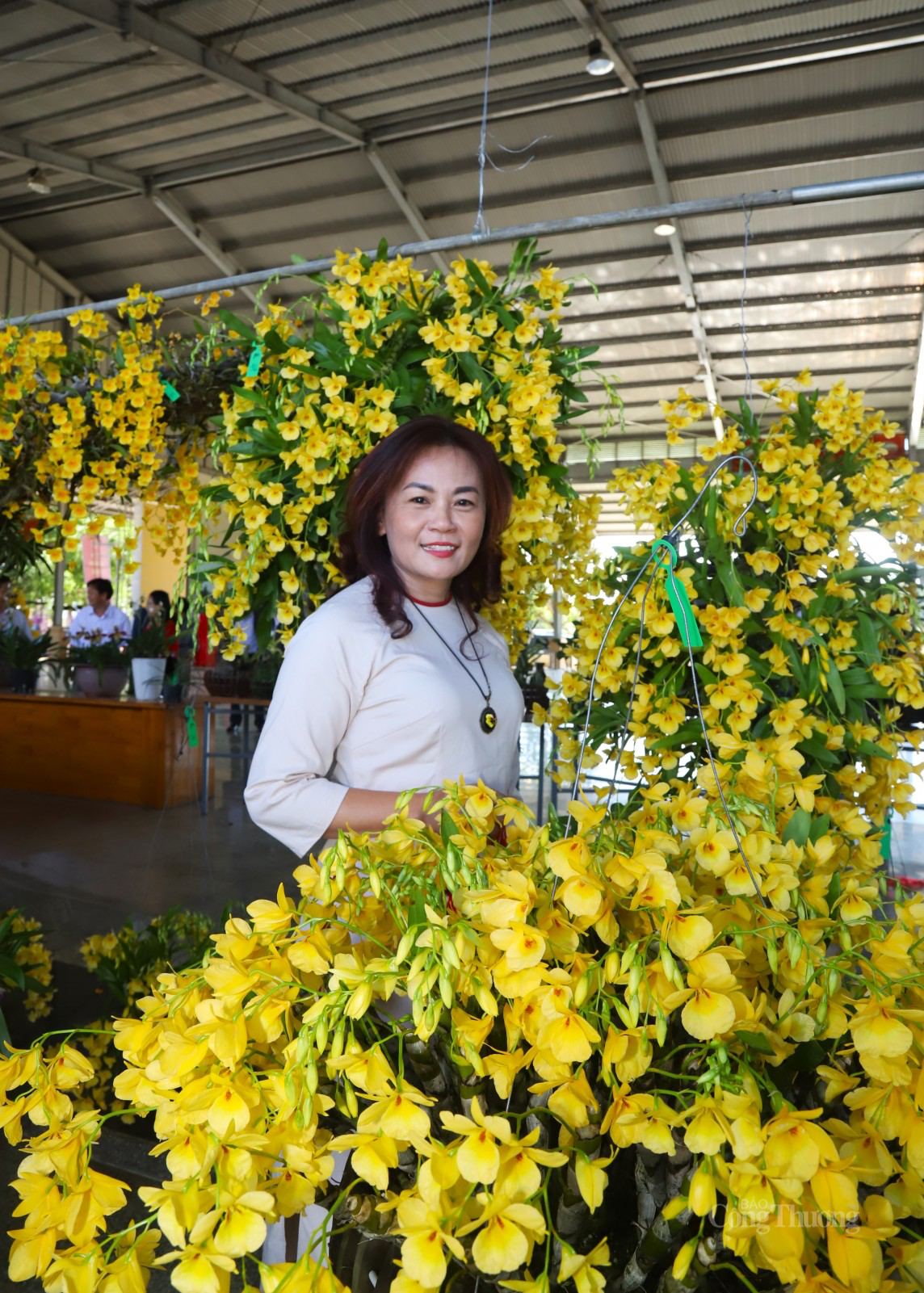 | Chủ nhân tươi cười bên tác phẩm hoa lan của mình |