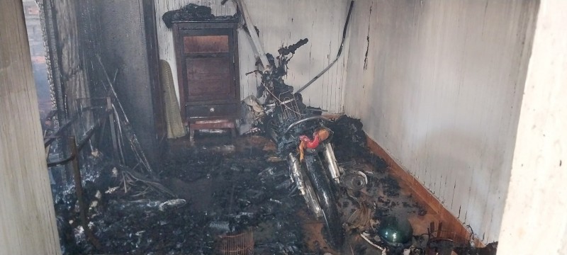 | Các vật dụng bên trong nhà nạn nhân gần như bị cháy rụi, thiệt hại hoàn toàn |