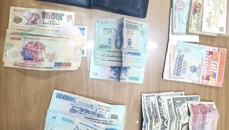 | Tiền và giấy tờ trong ví da thời điểm anh Thương và anh Khánh nhặt được |