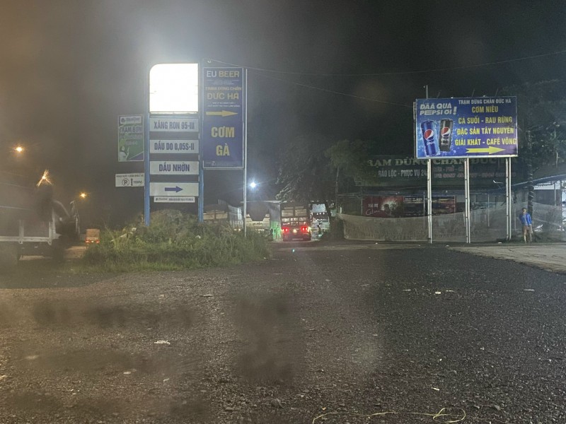 | Điểm dừng chân của các xe chở khoáng sản gần đèo Bảo Lộc. |