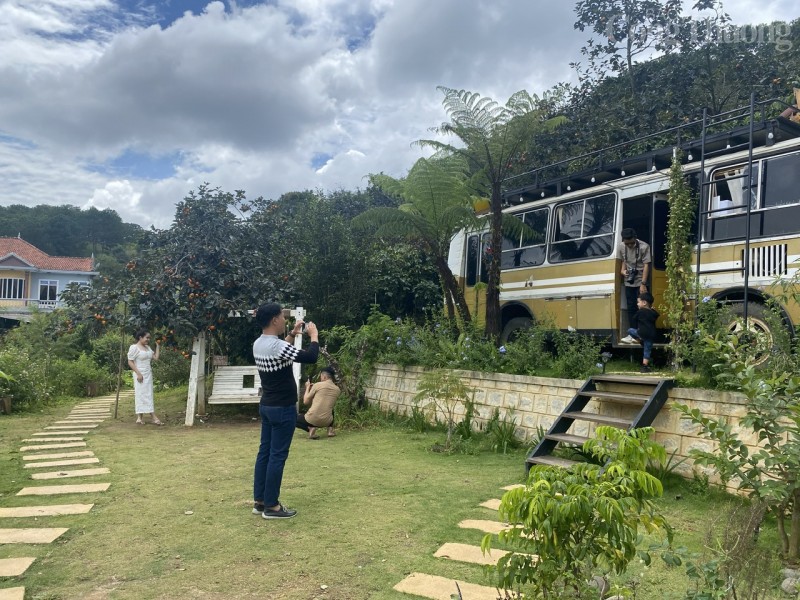 | Khách du lịch đến tham quan vườn hồng, chụp hình check-in |