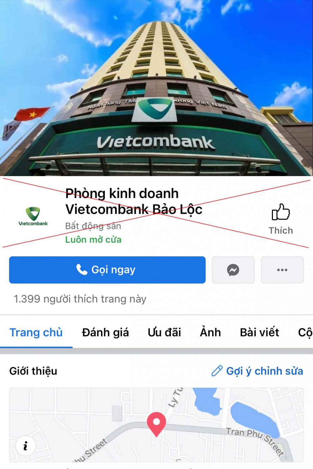 Theo đó, khoảng giữa tháng 7/2022, trên mạng xã hội Facebook xuất hiện 01 fanpage (Trang Facebook) mang tên “Phòng kinh doanh Vietcombank Bảo Lộc” thường xuyên đăng tải các bài viết liên quan đến phát mãi tài sản là “đất nền” trên không gian mạng.