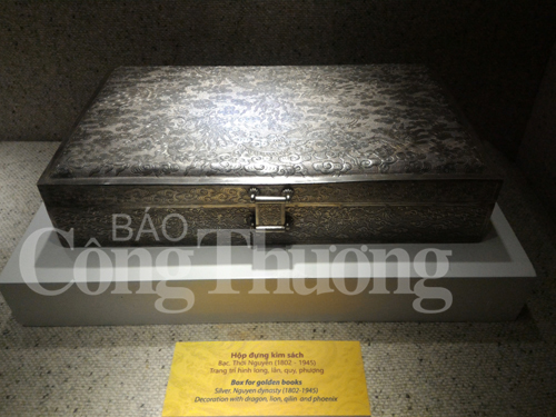 Bảo tàng Lịch sử quốc gia hiện đang lưu giữ sưu tập Kim sách triều Nguyễn bằng vàng và bạc mạ vàng, theo khổ chữ nhật đứng, bìa trang trí hình rồng 5 móng và hình phượng, gáy đóng 4 khuyên tròn.