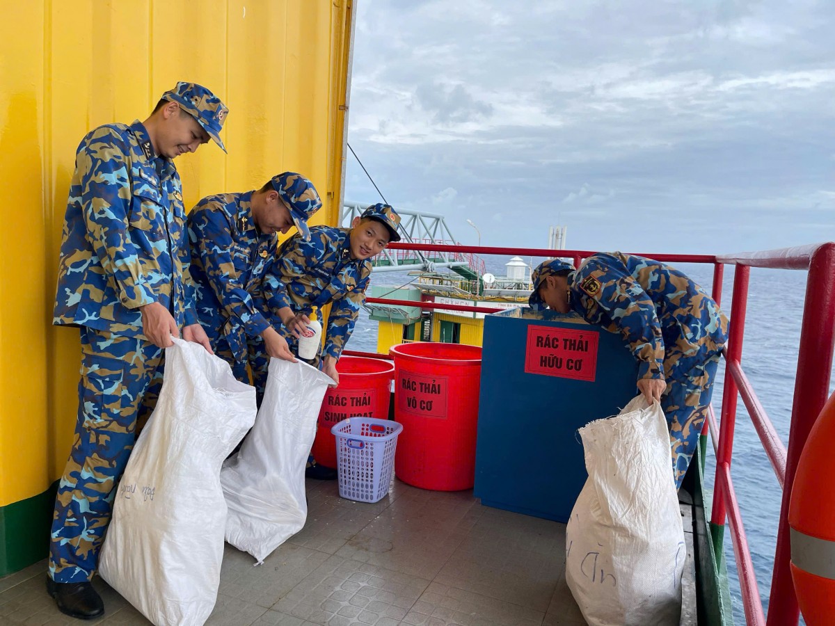 Thực hiện nhiệm vụ dài ngày trên biển, trên những con tàu, việc phân loại, xử lý rác thải được thực hiện nghiêm ngặt theo đúng quy trình.