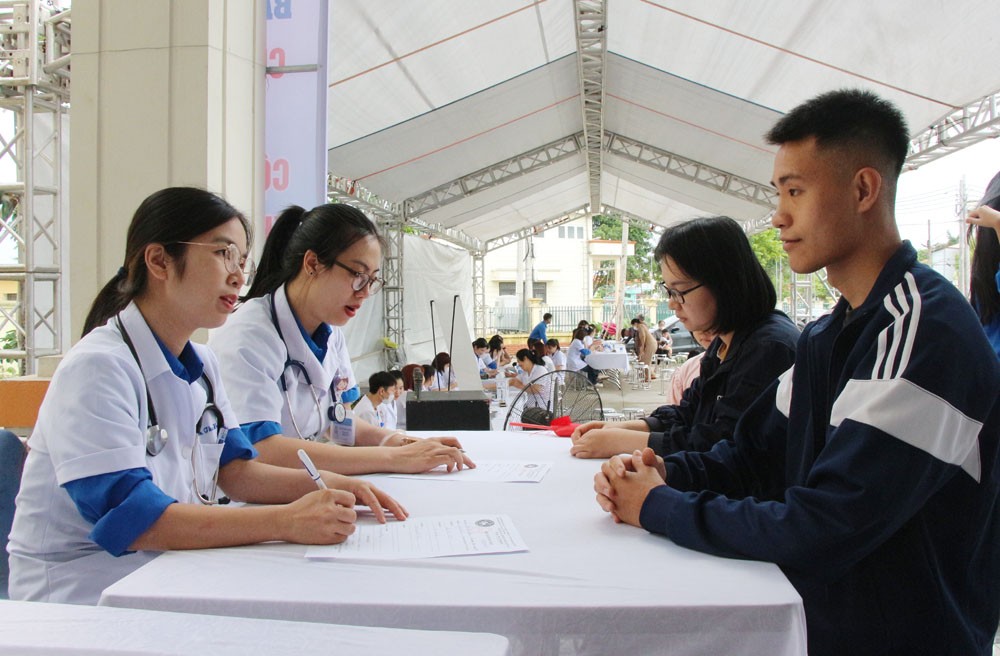| Các bác sĩ tư vấn sức khỏe cho thanh niên tại ngày hội. Ảnh: Thu Thủy |