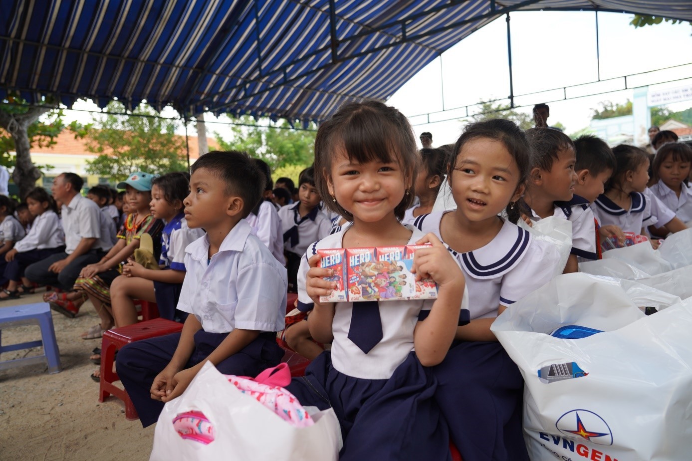 Tại chương trình, EVNGENCO2 và SBH đã trao tặng 210 phần quà cho học sinh khối tiểu học. Mỗi phần quà gồm balo, bộ đồ dùng học tập và 2 lốc sữa, trị giá 500 nghìn đồng, với tổng giá trị quà tặng 105 triệu đồng. Ngoài ra, Công ty còn tặng 55 thùng sữa tươi (mỗi thùng sữa trị giá 300.000 đồng) cho 55 học sinh của trường.