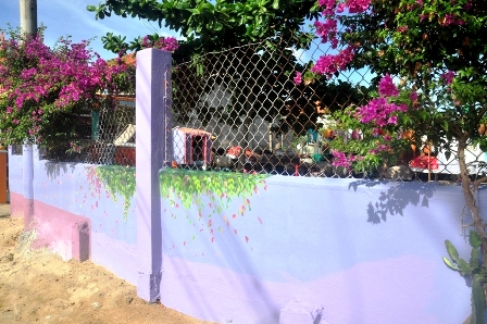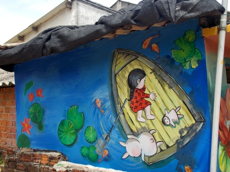 | Bức bích họa thấp thoáng trên tường nhà người dân |