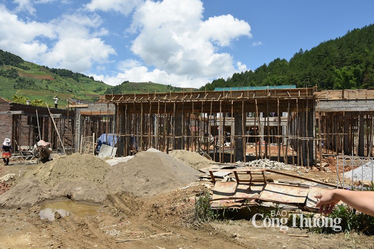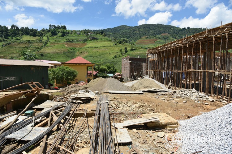 | Công trình chợ Khao Mang mới đang được huyện Mù Cang Chải đẩy nhanh xây dựng |