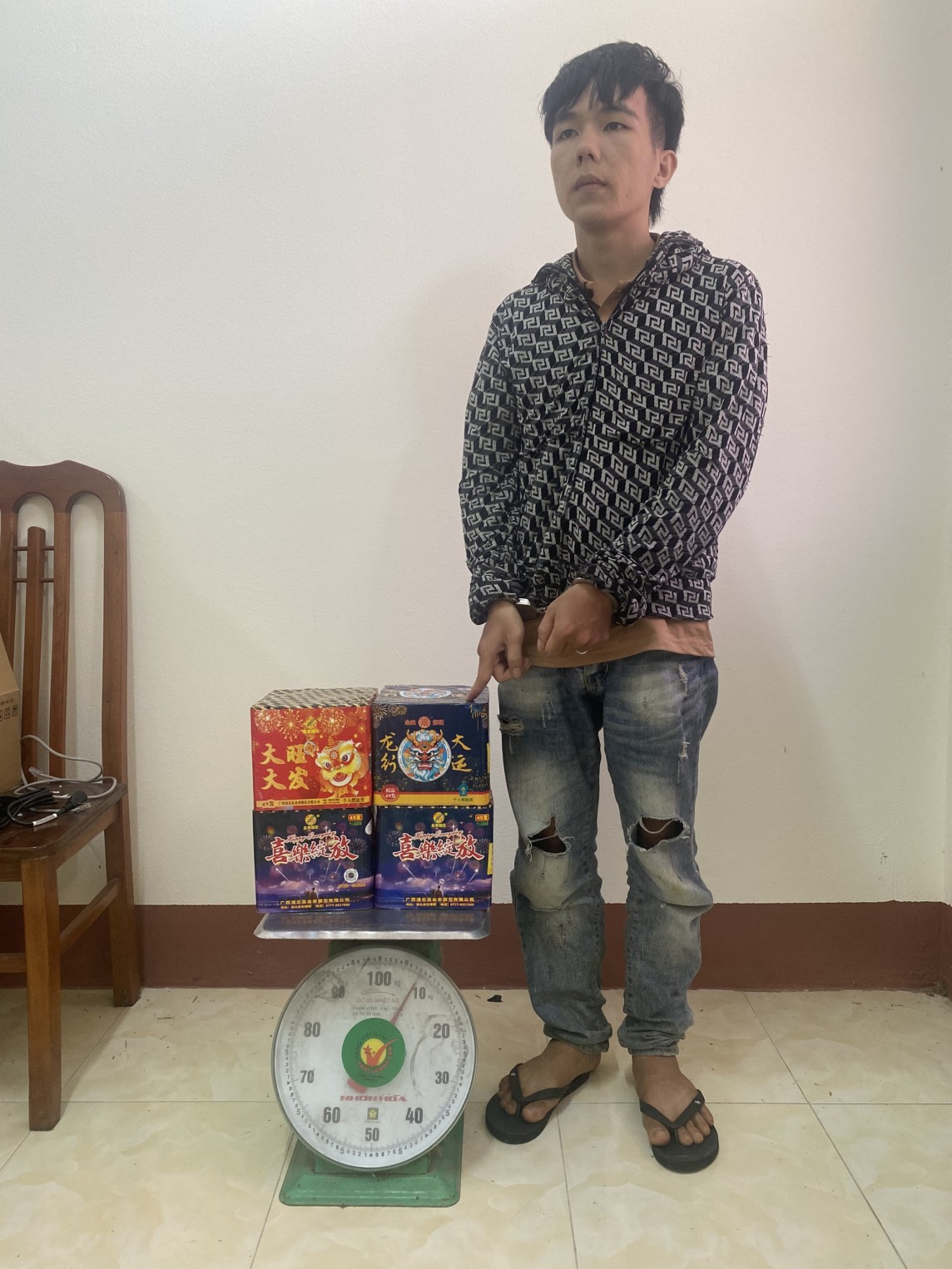 Cụ thể, qua công tác nghiệp vụ, vào hồi 11 giờ 30 phút, ngày 10/7/2024, tại khu vực “Gốc nhãn” thuộc thôn Khơ Đa, xã Tân Mỹ, huyện Văn Lãng, Công an xã Tân Mỹ chủ trì, phối hợp với đội Cảnh sát điều tra tội phạm về Kinh tế - Ma tuý, Công an huyện Văn Lãng phát hiện đối tượng Lưu Minh Vương, sinh năm 1995, trú tại phố Đức Tâm, thị trấn Văn Quan, huyện Văn Quan đang đi bộ, trên người đeo một ba lô màu đỏ - đen. Bên trong ba lô có 4 giàn pháo hoa nổ (loại 49 quả/giàn), 10 bánh pháo tép và 5 phong hình hộp gồm các vật hình trụ được liên kết với nhau bởi dây nối, có in chữ nước ngoài, nghi là pháo nổ, tổng khối lượng các tang vật là 11,5kg. Tổ công tác đã tiến hành lập biên bản, thu giữ tang vật và đưa đối tượng về trụ sở để làm rõ.
