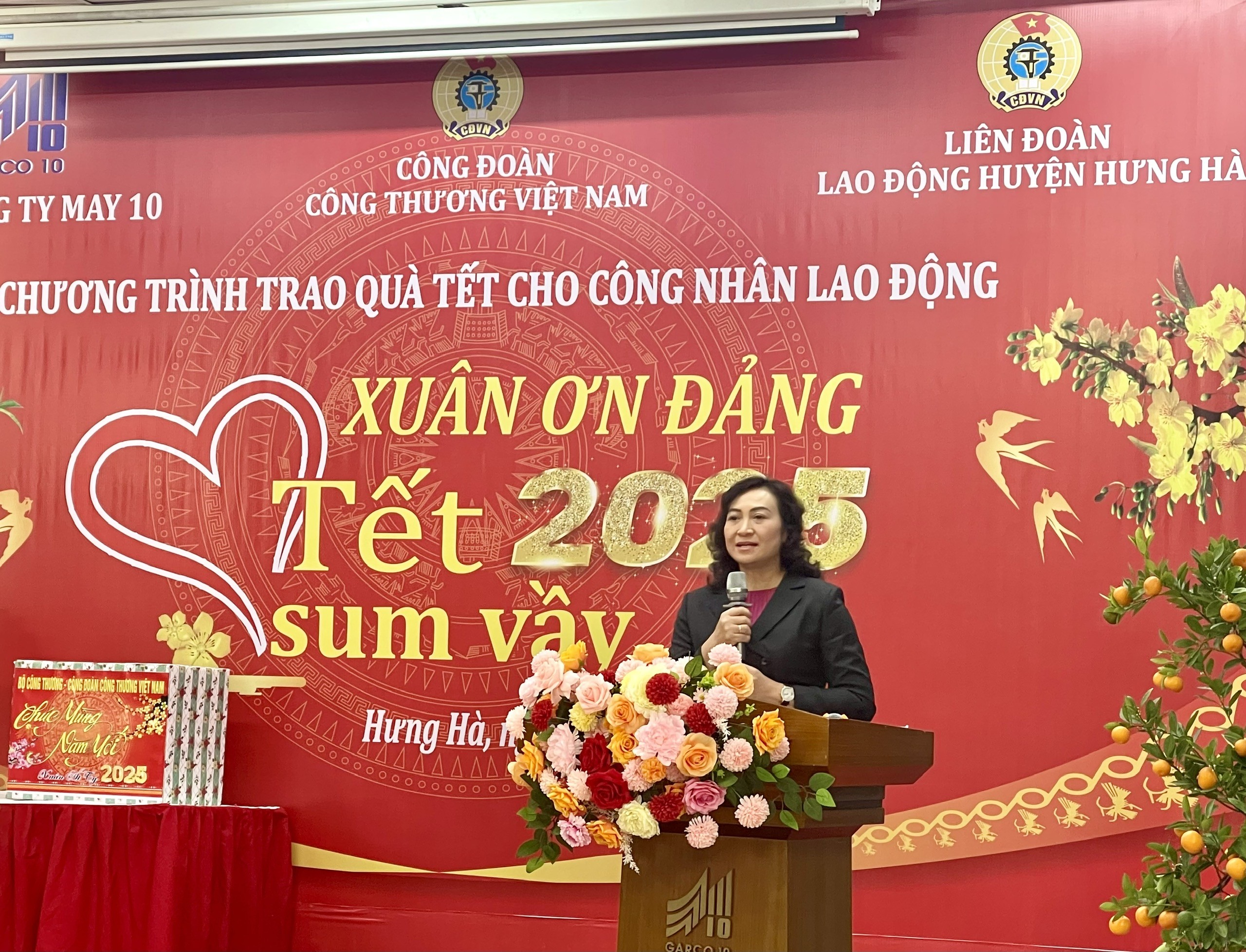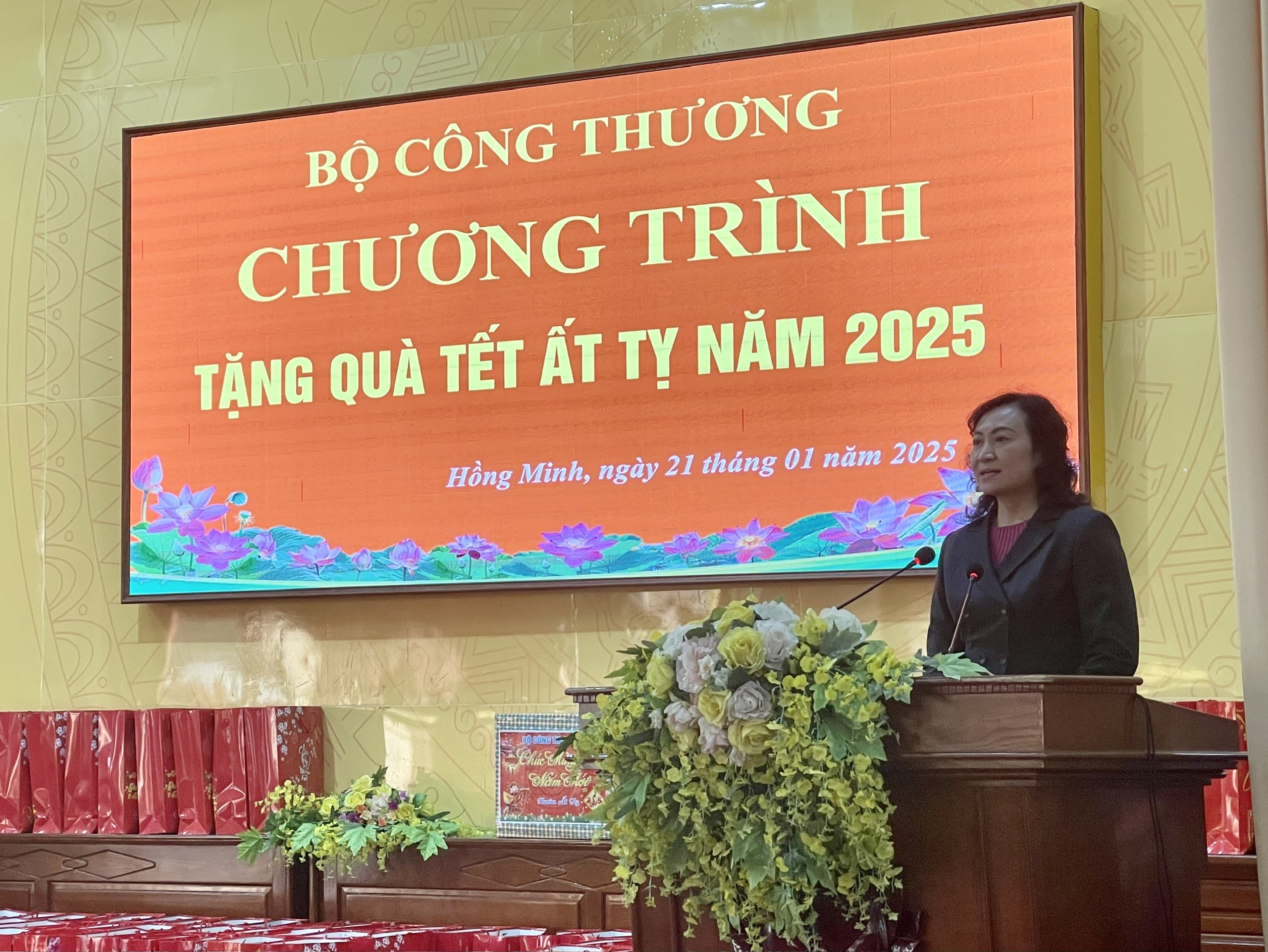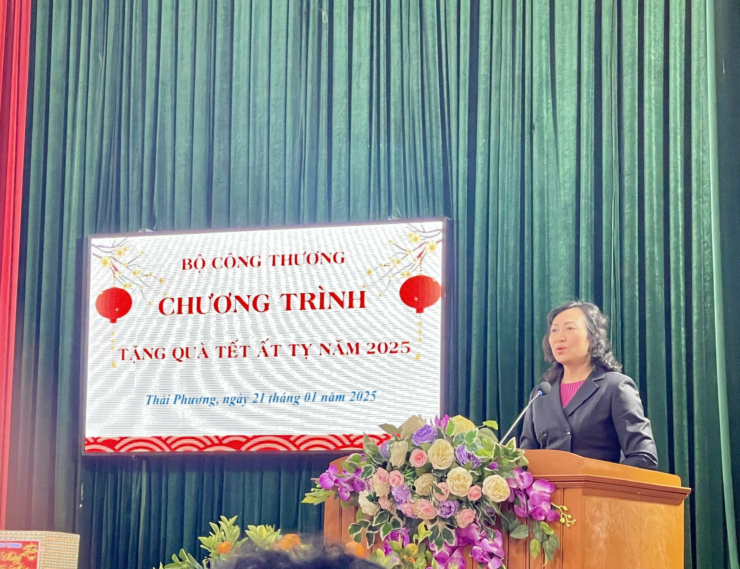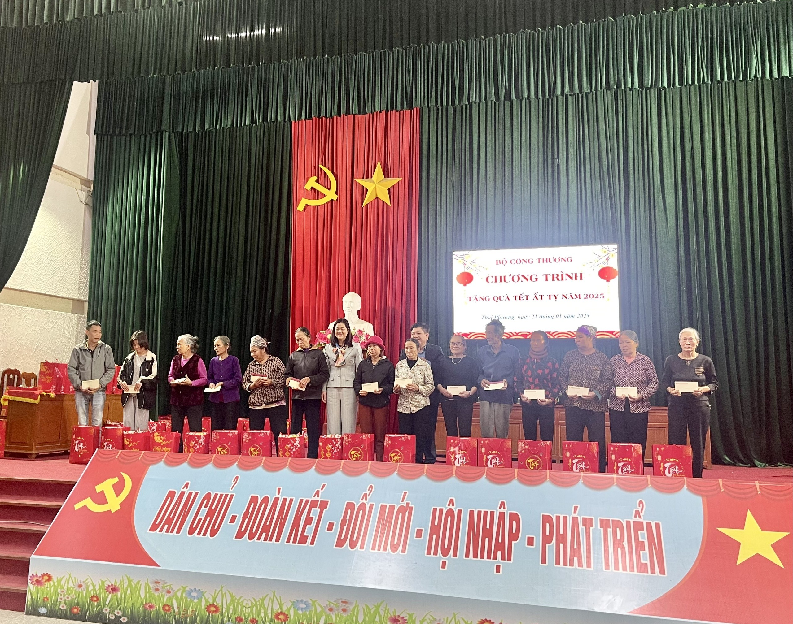 Nhân dịp Tết Nguyên đán Ất Tỵ 2025, chiều 21/1, Thứ trưởng Bộ Công Thương Phan Thị Thắng cùng lãnh đạo Công đoàn Công Thương Việt Nam, Công đoàn Bộ Công Thương, các doanh nghiệp đã đến thăm, tặng quà và động viên các thương binh, bệnh binh, đoàn viên, người lao động, gia đình khó khăn, đối tượng chính sách của hai huyện Vũ Thư và Hưng Hà (tỉnh Thái Bình).