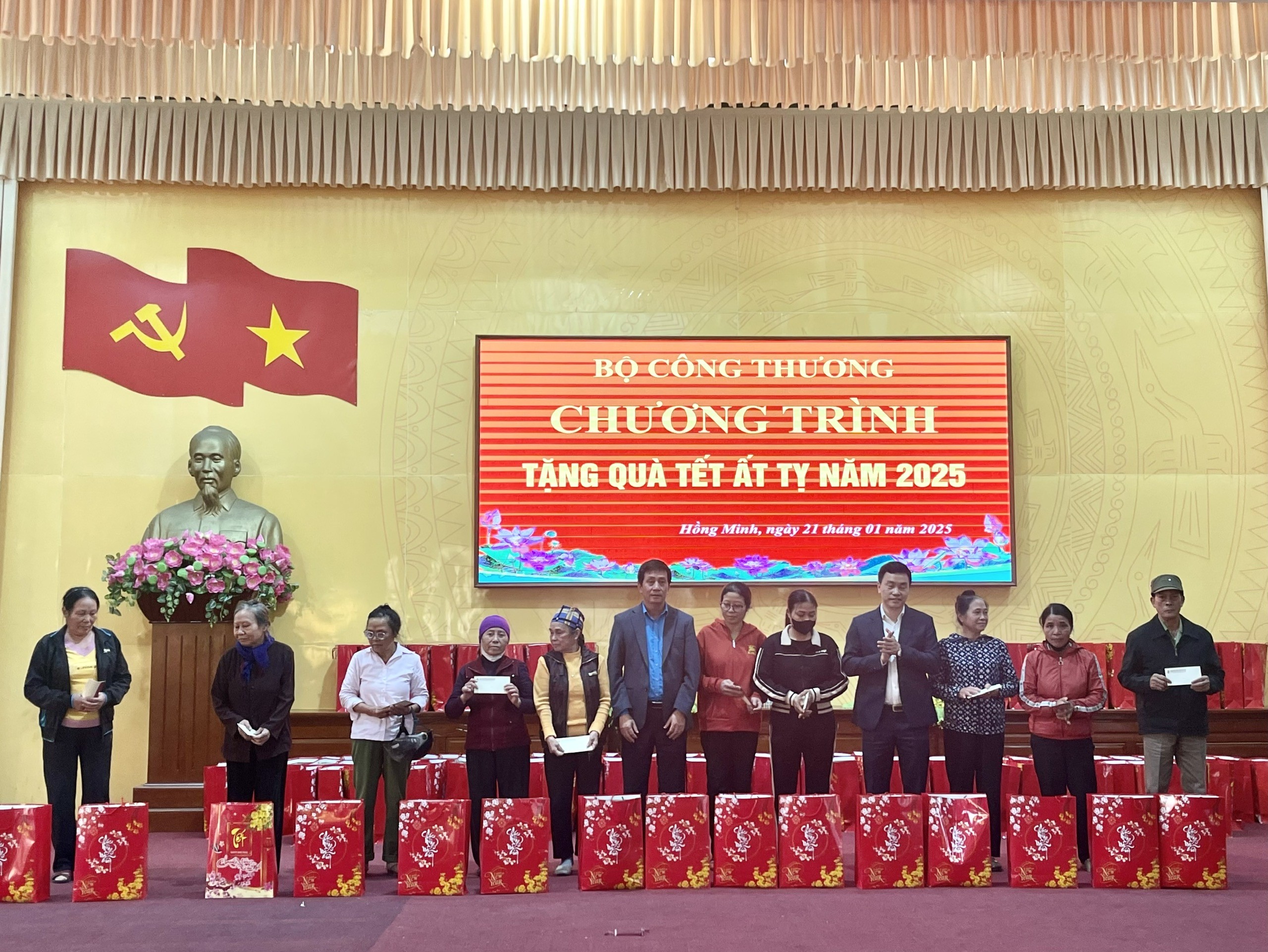| Lãnh đạo Bộ Công Thương trao quà Tết tại UBND xã Hồng Minh |