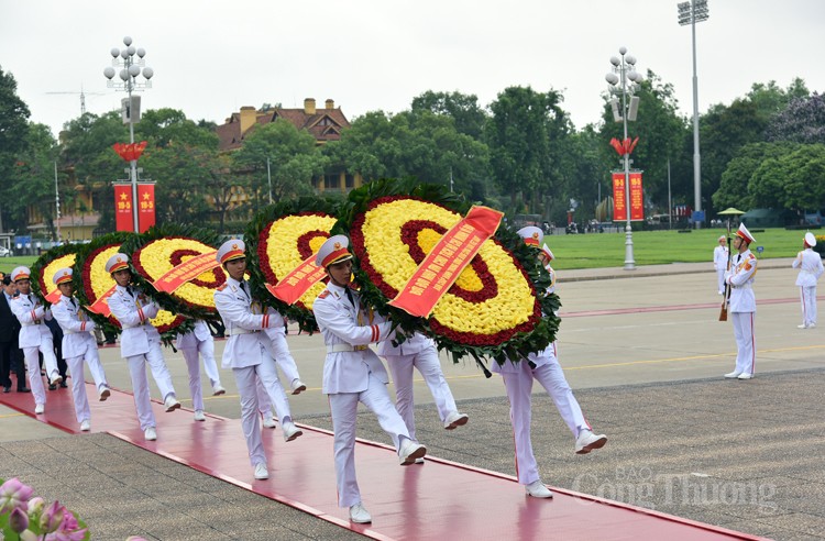 Sáng cùng ngày, các đại biểu Quân ủy Trung ương - Bộ Quốc phòng, Đảng ủy Công an Trung ương - Bộ Công an, Thành ủy, hội đồng nhân dân UBND thành phố Hà Nội… đã đến đặt vòng hoa vào Lăng viếng Chủ tịch Hồ Chí Minh.