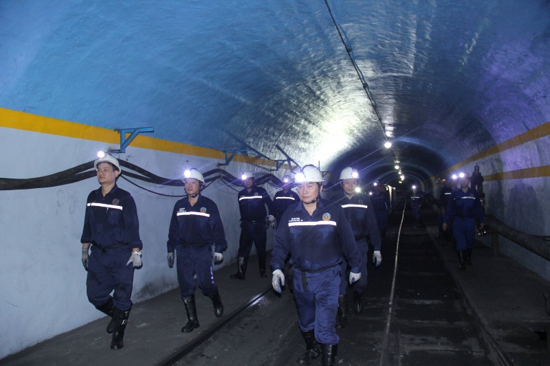 Phó Tổng giám đốc Tập đoàn Vũ Anh Tuấn cùng đoàn công tác của Tập đoàn kiểm tra sản xuất hầm lò tại Công ty Than Quang Hanh |