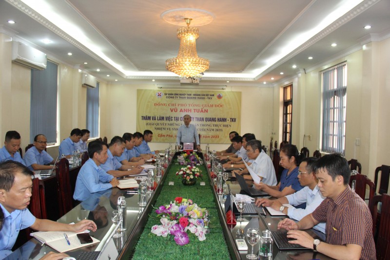 Sau khi kiểm tra sản xuất hầm lò tại lò chợ khu Nam 6.5 vỉa 9 mức -200/-175 khai thác công nghệ giá khung phân thể ZHF và thăm hỏi, tặng quà công nhân Phân xưởng Khai thác 9 đang làm việc tại lò chợ. Ông Vũ Anh Tuấn cùng đoàn công tác của Tập đoàn đã có buổi làm việc với cán bộ chủ chốt của Công ty Than Quang Hanh.