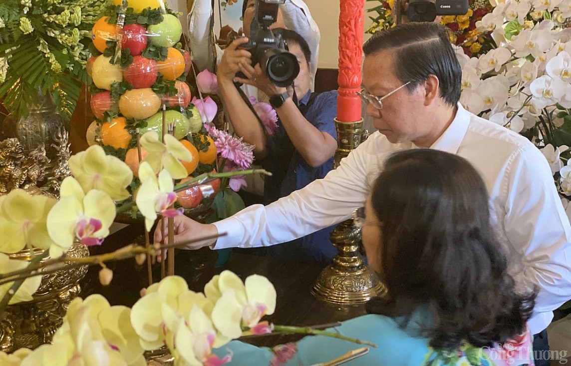 | Chủ tịch UBND TP. Hồ Chí Minh Phan Văn Mãi dâng hương Chủ tịch Hồ Chí Minh tại. Ảnh: Thanh Minh |