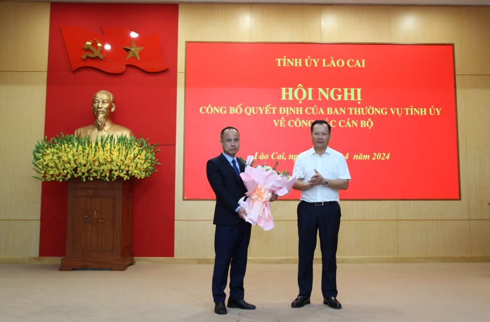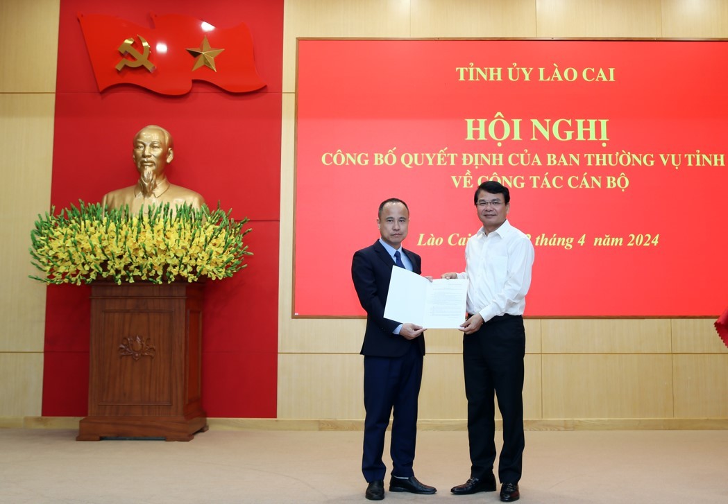 Tại Hội nghị, ông Đặng Xuân Phong - Bí thư Tỉnh ủy Lào Cai đã trao Quyết định số 899-QĐ/TU ngày 27/3/2024 của Ban Thường vụ Tỉnh ủy Lào Cai về việc tiếp nhận ông Phan Quốc Nghĩa – Chánh Văn phòng UBND tỉnh Lào Cai đến công tác tại Văn phòng Tỉnh ủy Lào Cai; bổ nhiệm giữ chức vụ Chánh Văn phòng Tỉnh ủy Lào Cai, thời hạn bổ nhiệm 5 năm, kể từ ngày 01/4/2024.