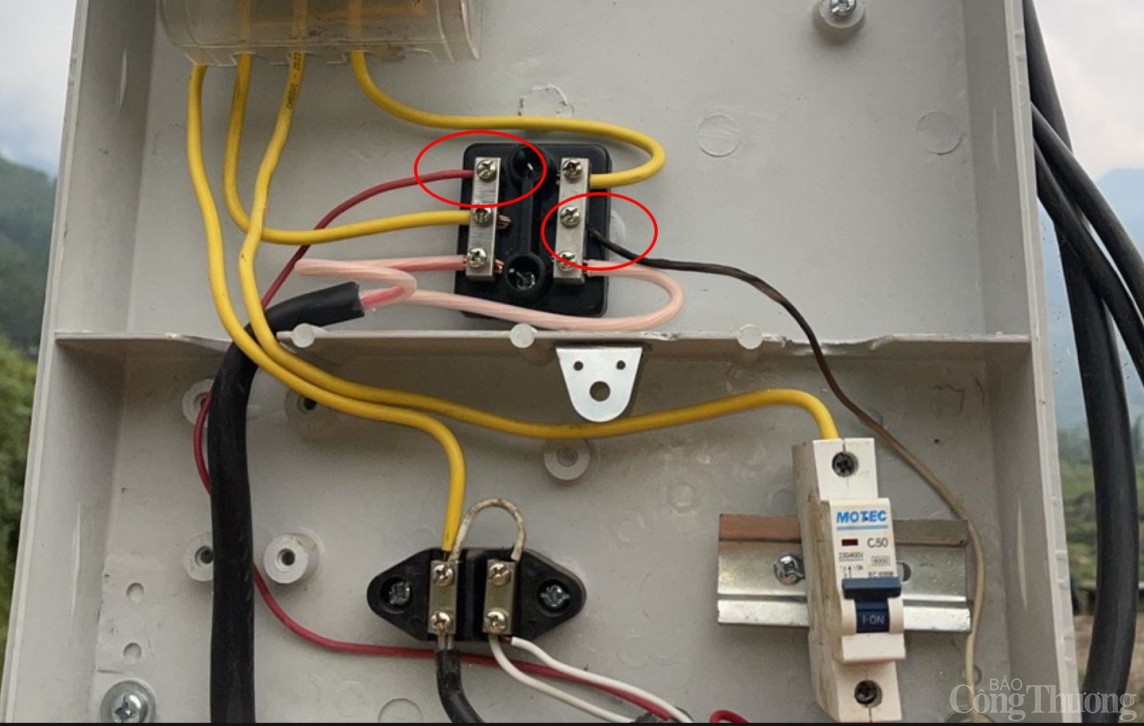Qua kiểm tra thực tế tại hiện trường, đoàn kiểm tra phát hiện hộ dân ông B.H.V trú tại thôn Suối Thầu 1, xã Ngũ Chỉ Sơn, thị xã Sa Pa, tỉnh Lào Cai đã tự ý phá kẹp chì hòm công tơ, dùng dây PVC 2x2,5mm2 đấu nối trực tiếp vào lưới điện 0,4kV (cầu đấu dây trong hòm công tơ) không qua hệ thống đo đếm điện năng với mục đích chiếu sáng ban đêm để phục vụ trồng hoa (Tổng thiết bị gồm có khoảng 500 bóng đèn sợi đốt công suất 10W/bóng và 01 rơ le thời gian cài đặt từ 19h-05h)