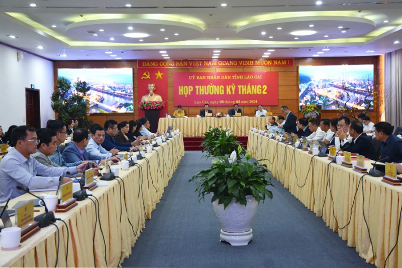 | Phiên họp thường kỳ tháng 2/2024 của UBND tỉnh Lào Cai (Ảnh: CĐTLC) |