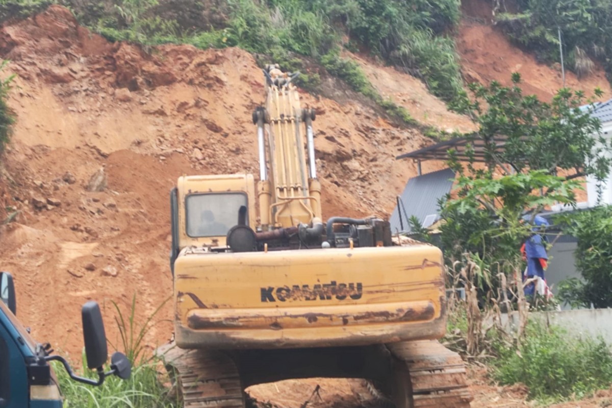 Khi đến nơi, phát hiện hàng ngàn khối đất đá từ trên quả đồi sạt xuống vùi lấp phía sau căn biệt thự của bà T. và dãy nhà dân ở mặt đường tỉnh lộ 4E. Nhiều người trong những ngôi nhà bị sạt lở đã nhanh chân chạy được ra ngoài, không ai bị thương vong.